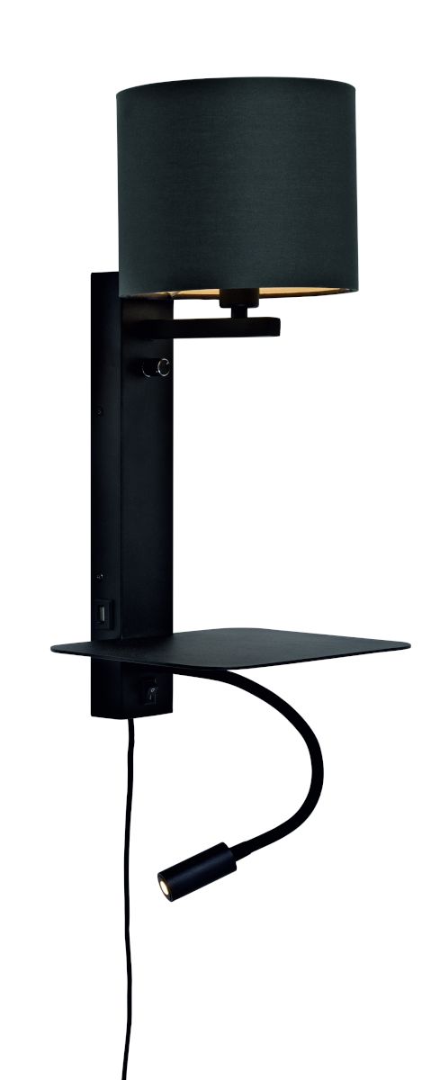 Applique Florence Board Lampada da Lettura USB Nera 18 cm